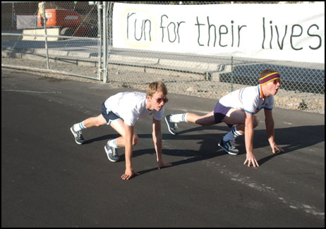 In September of 2003, Andrew, Reachel & Robby McKinnon ran in a charity 5K. Reachel & Andrew had been dating only a few weeks, and Andrew was ready to test Reachel's loyalty. He and Robby arrived wearing track pants and sweatshirts, but immediately prior to the event they stripped down to short shorts and long socks. Reachel's affections remained strong, but she was disappointed that she wasn't invited to join in with tights and a french-cut leotard.