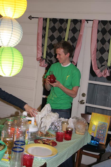 For Andrew's 26th birthday (3.19.05), Reachel masterfully executed a surprise party. First, Reachel claimed to be making a cake for a ward funeral. As she prepared a meal for an un-busied Sabbath, she dashed up enough vegetables to top an army's feeding worth of pizzas. Finally as I went with Blake & Lizzy (my brother and sister-in-law) to trade in the iPod mini for an iPod photo, the masses (Errol, Elaine, Jarom, Kara, Liesel, Jake, Blake & Lizzy, Wes & Lyndsay Johnson, Roger & Emily Childers, Patrick & Natalie Hall) gathered and parked their cars in the Easter pageant traffic down the street. More pictures are available at http://www.fig.smugmug.com